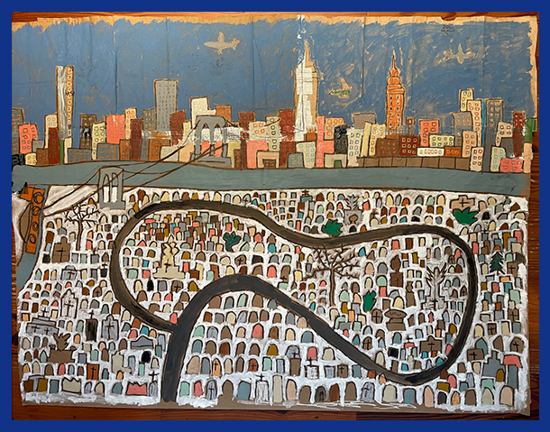 Chip Haggerty, “Calvary Cemetery,” no date, acrylic paint on brown paper, 48 x 60 inches (121.92 x 152.4 centimeters). Photo courtesy of the artist