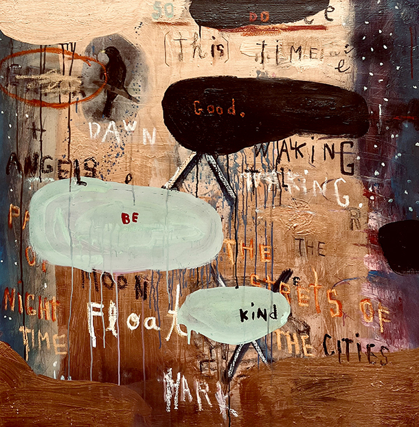 Brody-Lederman’s paintings on canvas and paper give tangible form to the ineffable; often inspired by a newspaper headline that has caught her eye or a snippet of conversation she has overheard at the supermarket, her subject matter is the fleeting, often ambiguous stuff of emotions, psychological states, and the flotsam and jetsam of a restless, introspection-accustomed soul.