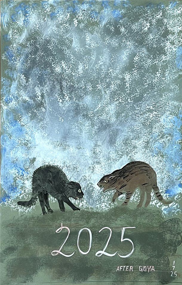 In response to the currents and chaos of the present moment, Brody-Lederman sent us this painting (above) and this note: