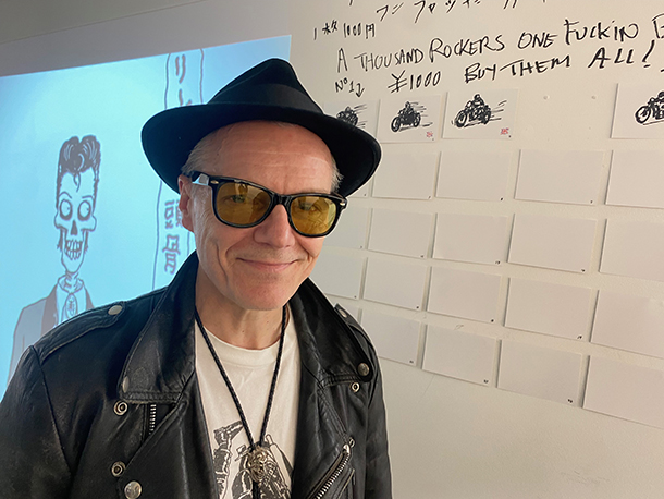 brutjournal caught up with the artist on the occasion of the opening of his new exhibition in Tokyo. We started by asking him about his interest in motorcycles and biker culture, and, in particular, about how he came to fuse the spooky imagery of skulls and skeletons, a rocker vibe, and his interest in the powerful bikes that are sometimes referred to by their owners as “beasts.”
