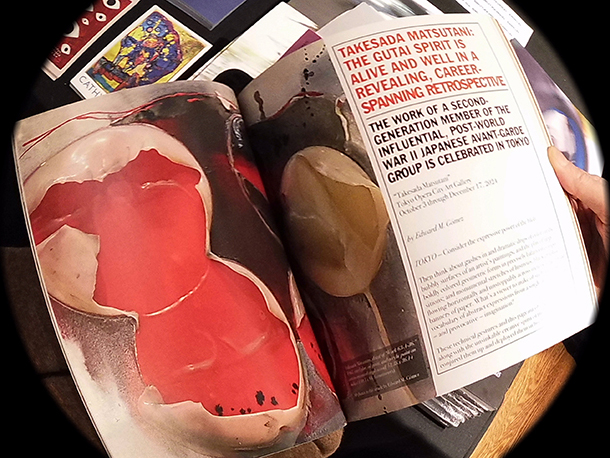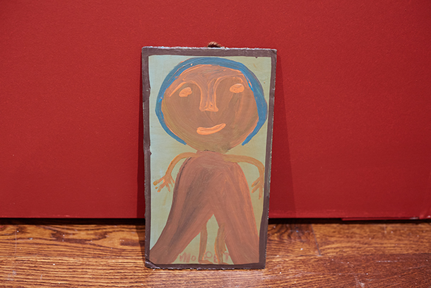 Pulp is also showing paintings made on scraps of paper bags by Hiroshi Tachibana, a self-taught artist who works as a forklift driver at the port of Kobe, a large, commercial city in south/southwestern Japan. With their gentle color washes and clever plays of form in images of boats, trees, and human figures, Tachibana’s pictures call to mind the spirit of the work of such artists as Jean-Michel Folon or Paul Klee, whose art was known for its formal playfulness and deep sense of humanism.