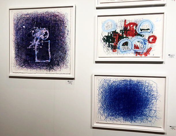 At this year’s fair, a little digging can go a long way. In the booth of Creative Growth Art Center, one of the leading art-studio programs in the U.S. for disabled art-makers, Dan Miller’s scratchy abstractions look as vibrant and feel as assured as ever. Creative Growth, which is now celebrating its 50th anniversary under the leadership of Sunny A. Smith, its new executive director, long ago made pioneering efforts to professionally promote some of its artists’ works to market. Today, the works of such Creative Growth artists as Miller, the late Judith Scott (1943-2005), and the late Dwight Mackintosh (1906-1999) are as well-known internationally as they are within the world of outsider art.