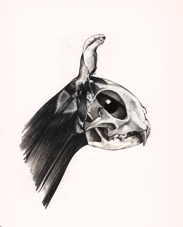 Very visibly, these spookily intriguing pictures allude to both animals and humans, and, therefore, to nature and the life force, even if the whatever the unexpected creatures they depict might have to say seems impossible to know. Might some viewers find in these strange images some kind of message related to humanity’s relationship with nature or perhaps with the fate of the Earth in the face of humankind’s harmful, destructive actions against the well-being of the natural environment?